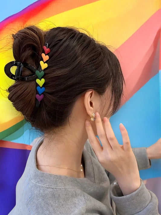 • PRIDE HEARTS RAINBOW CLAW CLIP BLACK