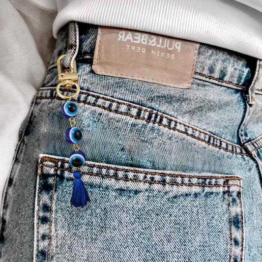 GOLD EVIL EYE BEADED TASSEL KEYCHAIN
