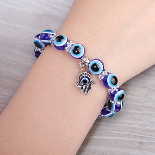 BLUE HAMSA EVIL EYE BEADED BRACELET