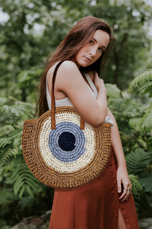 EVIL EYE LARGE WOVEN TOTE BAG