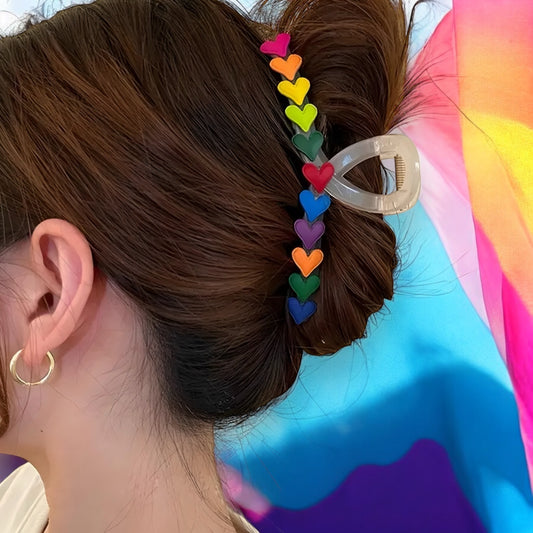 PRIDE HEARTS RAINBOW CLAW CLIP BLACK