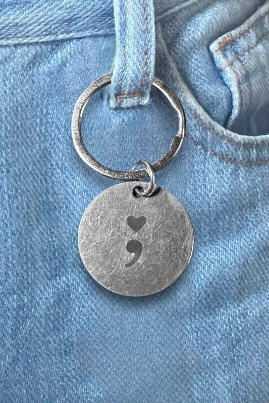 SUICIDE AWARENESS AND PREVENTION SILVER SEMICOLON KEYCHAIN