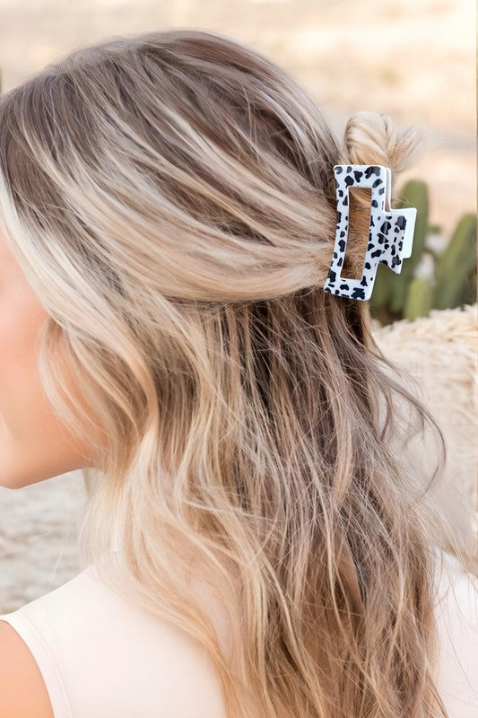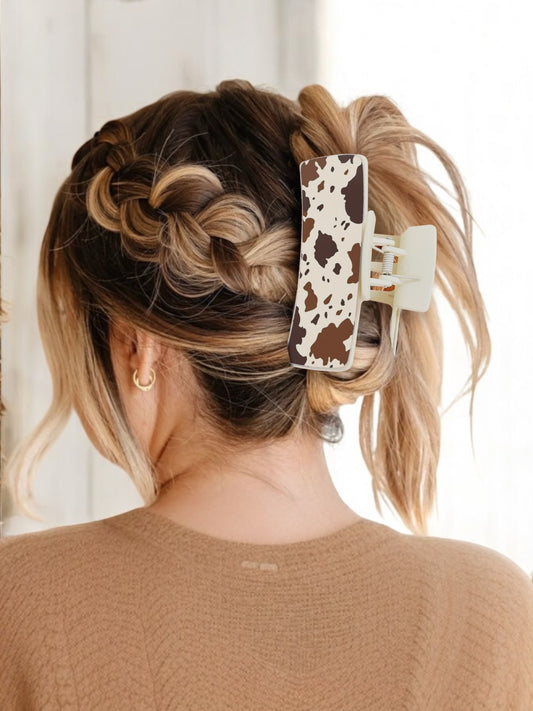 WESTERN COW PRINT FAUX LEATHER CLAW CLIP
