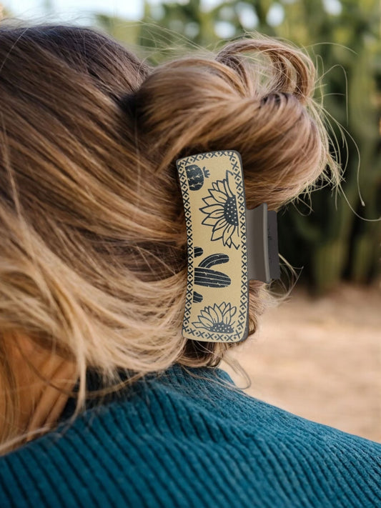 SUNFLOWER AND CACTUS FAUX LEATHER CLAW CLIP