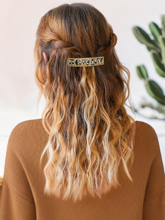 FAUX LEATHER COW PRINT HOWDY BARRETTE