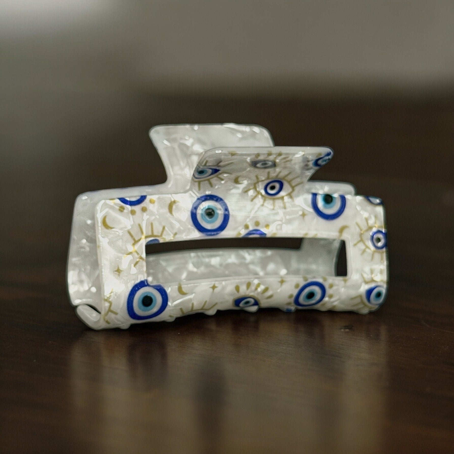 EVIL EYE PRINT PEARLOID CLAW CLIP