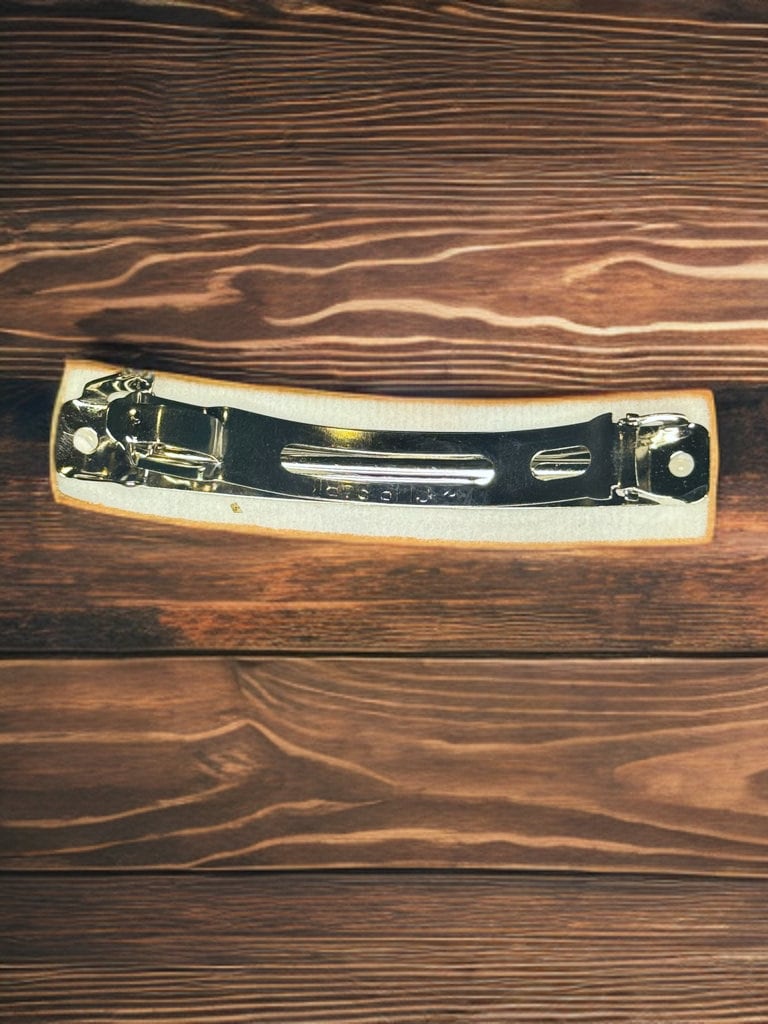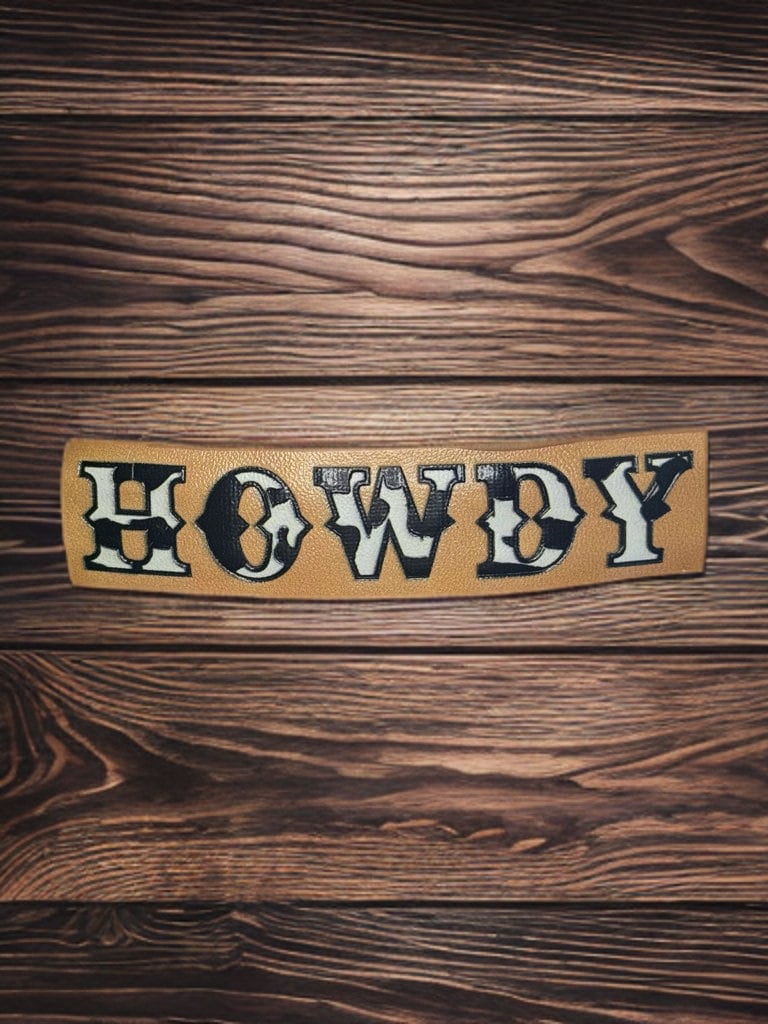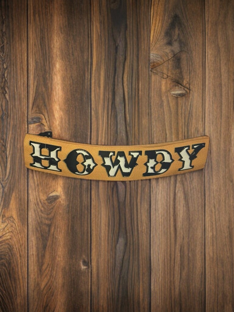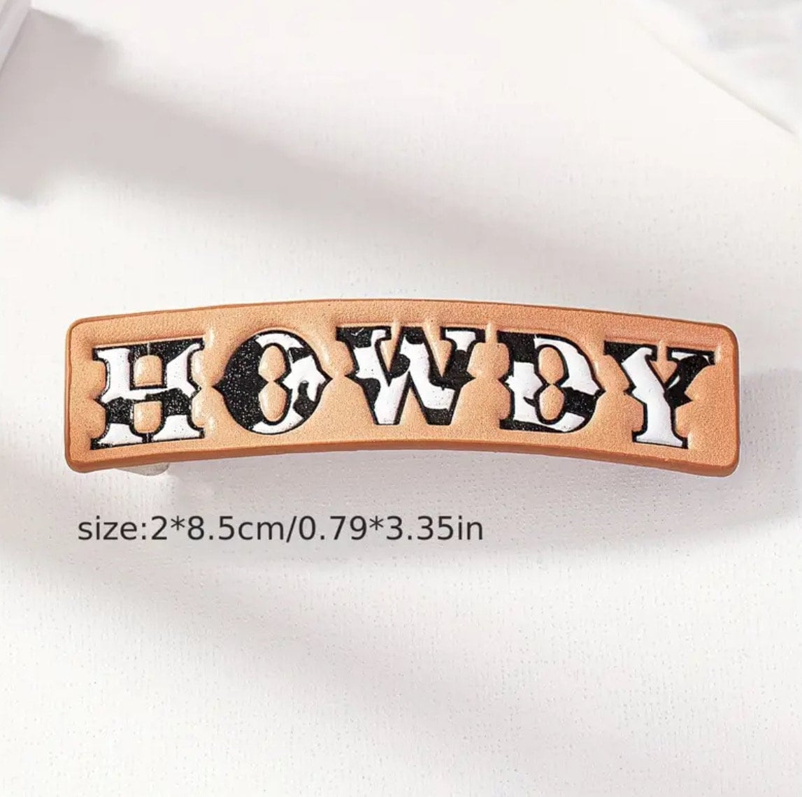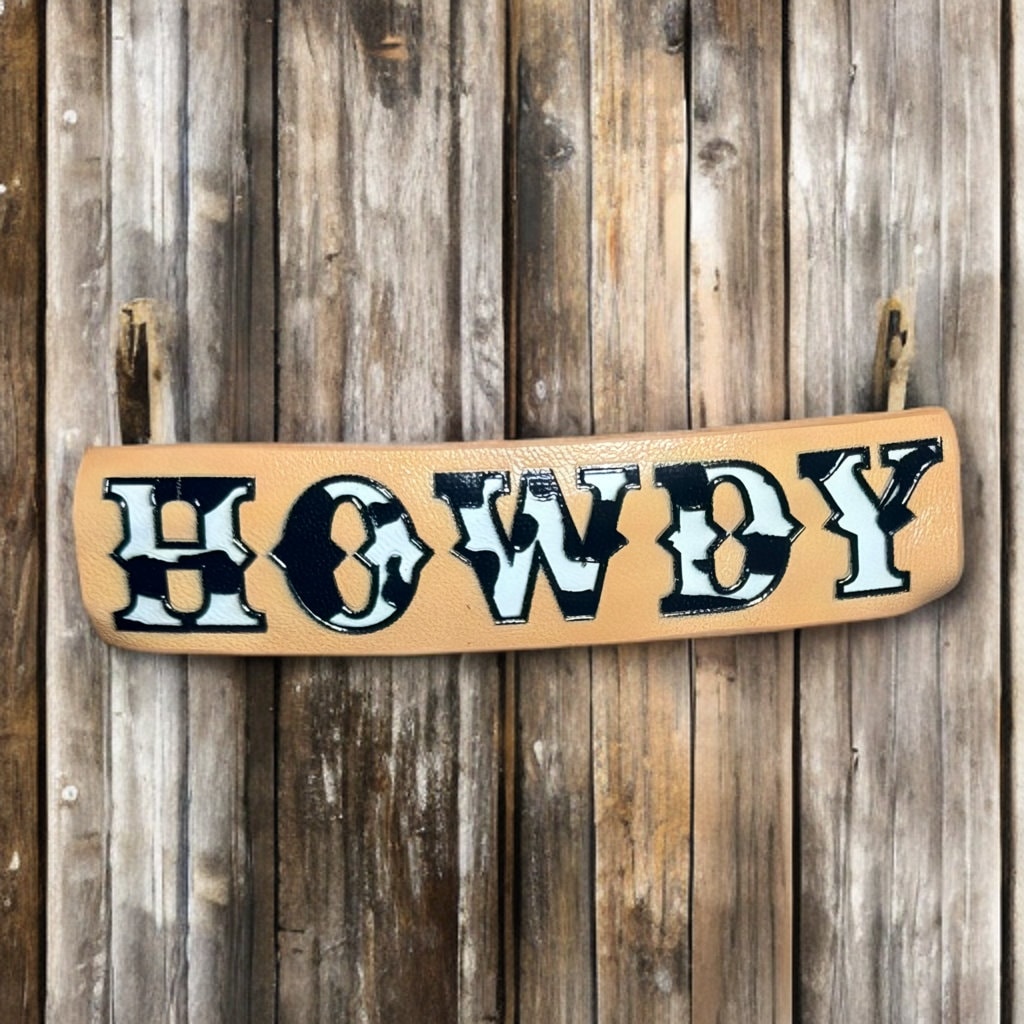 FAUX LEATHER COW PRINT HOWDY BARRETTE