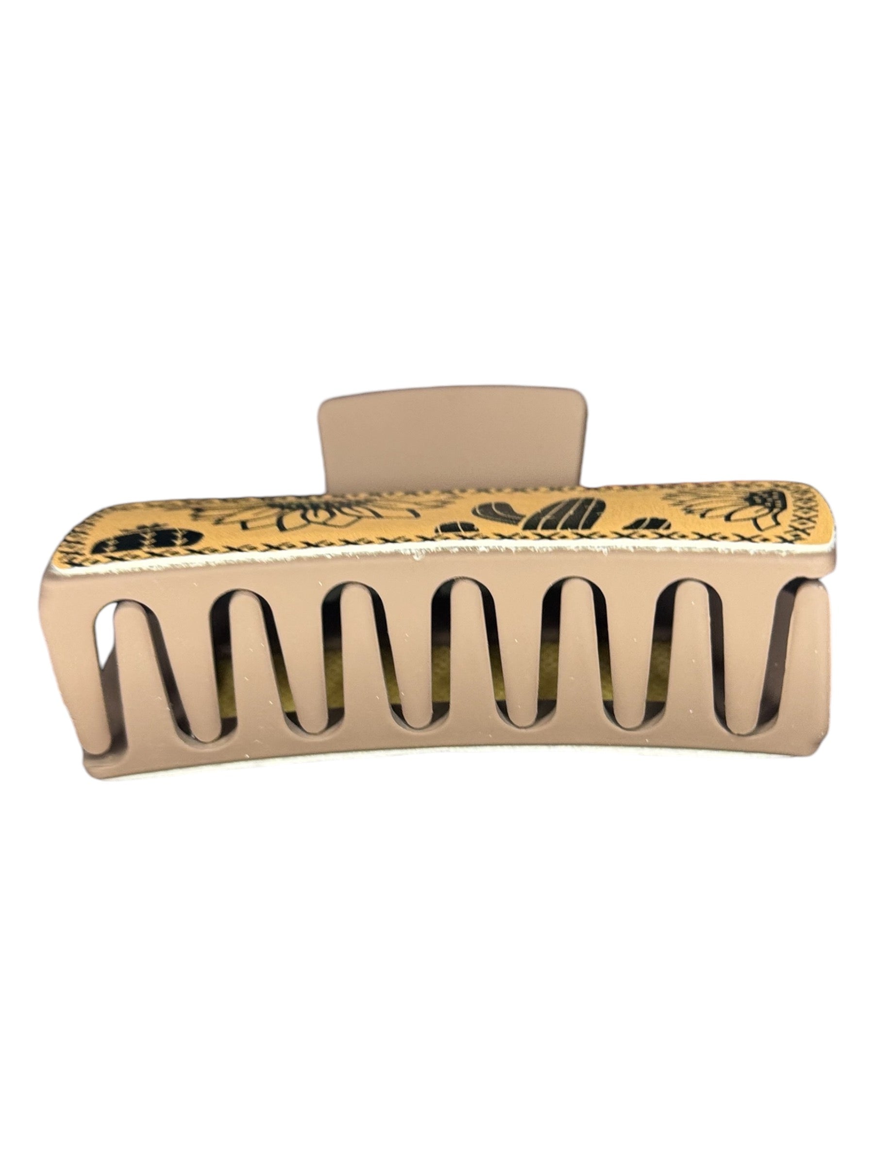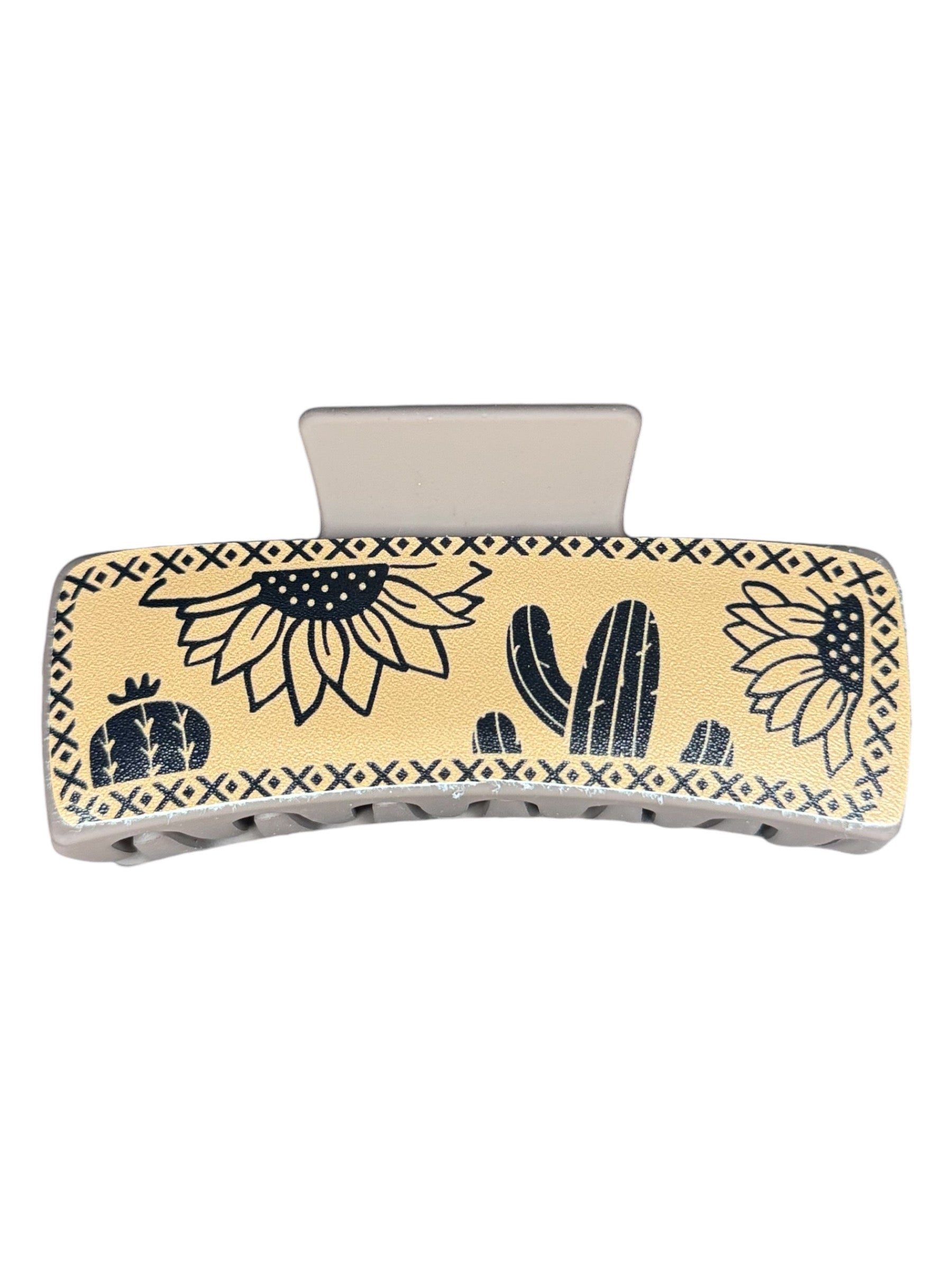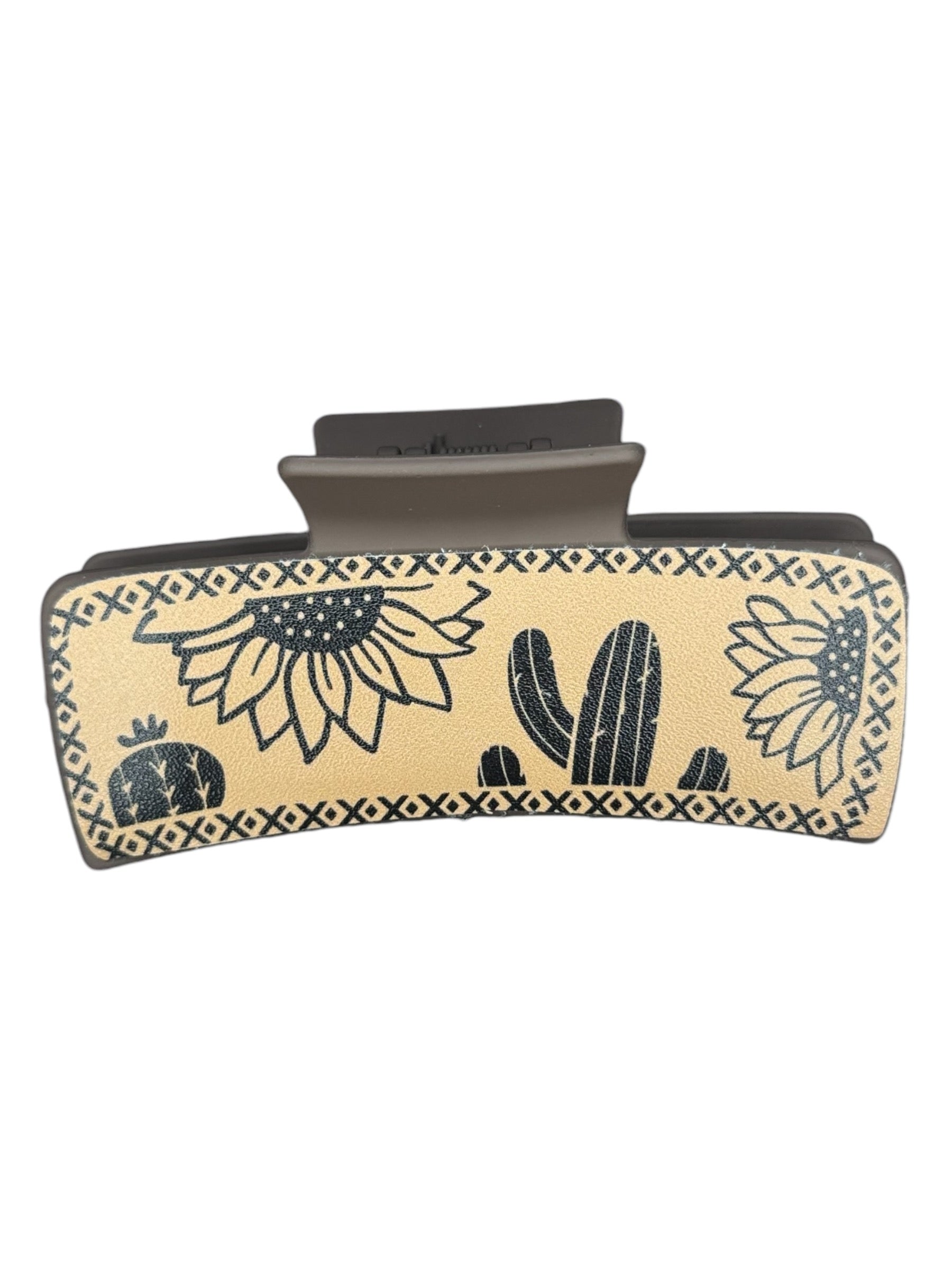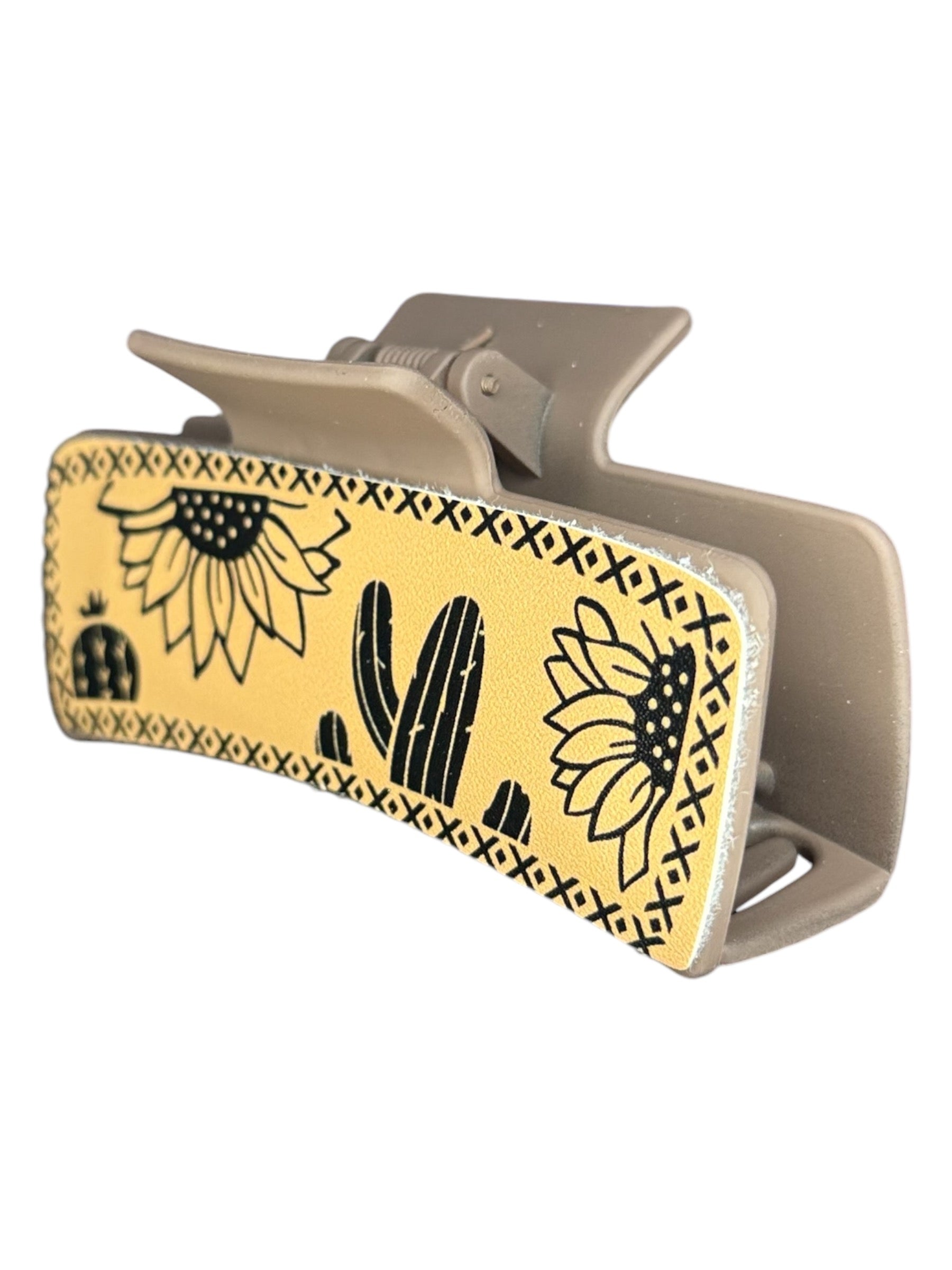 SUNFLOWER AND CACTUS FAUX LEATHER CLAW CLIP